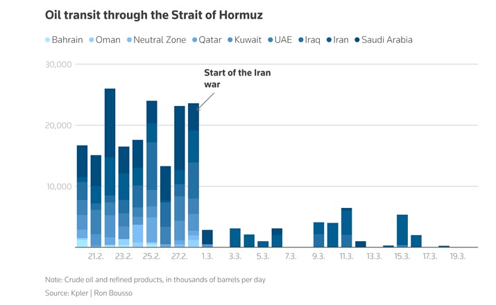 On February 28, 2026, The United States and Israel began striking Iran. Ocean container ship and oil tanker traffic in the Persian Gulf and through the Strait of Hormuz has virtually ceased. The impact of this is increasing price of oil and liquified natural gas (LNG) since 20% of the world’s energy ships from there to the world. Today, 3200 tankers are stranded in the Persian Gulf out of the 8800 tankers in the entire world. There are no major disruptions due to each nation having an inventory reserve detailed in the next paragraph. There is an additional 12 days of global inventory of crude oil in tankers at sea and approximately 10 days more of inventory anchored outside of ports.